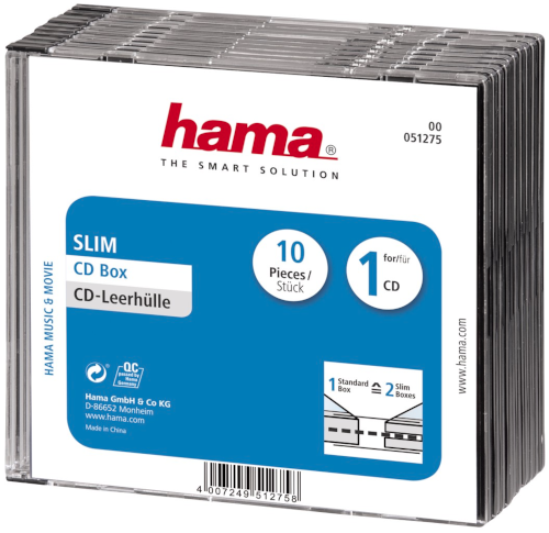 HAMA CD-Leerhülle Slim, 10er-Pack, Transparent/Sch