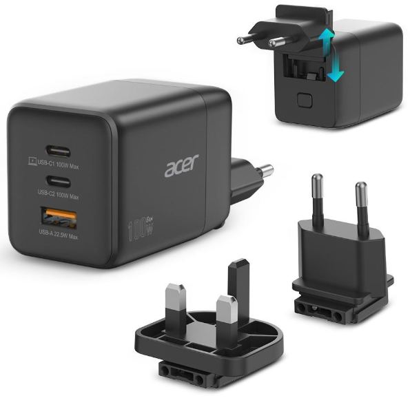 Acer 100W GaN Ladegerät USB-C/USB-A schwarz (HP.DSCAB.019)