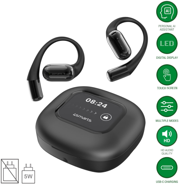 4smarts Open-Ear Bluetooth Kopfhörer SkyBuds AI Screen,schwarz