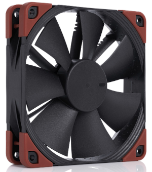 Enorm hochwertiger 120-mm-Lüfter von Noctua mit PWM-Anschluss, Wasser-/Staubschutz (IP52) und max. 121,8 m³/h (2.000 U/min)