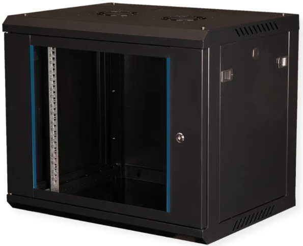 Die VALUE Wandgehäuse sind für flexible Netzwerkverkabelungen konzipiert und verfügen über ausgestanzte Kabeleinlässe im Boden und Dach sowie eine Lüftervorbereitung. Die robuste Stahlkonstruktion ist pulverbeschichtet und mit abnehmbaren Seitenwänden samt Schnellverschluss ausgestattet. Für mehr Sicherheit lassen sich optionale Schlösser integrieren. Der Schrank wird als Bausatz geliefert und lässt sich schnell und einfach montieren.