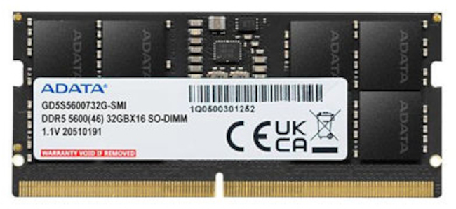 DDR5 SO-DIMM 262-Pin, on-die ECC, PC5-44800S, 1x 32GB