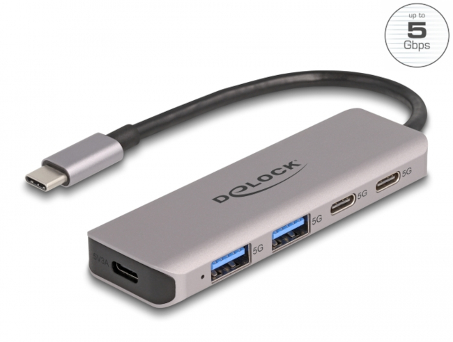 Delock 4-Port USB-Hub mit PD grau USB-C 3.0 (64239)