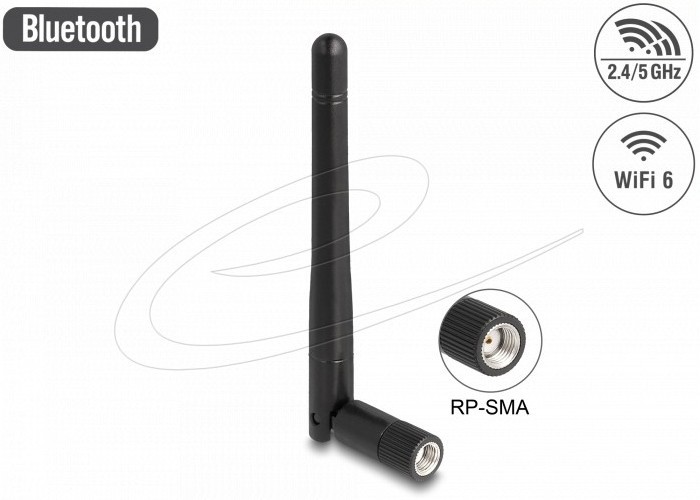 Delock WLAN 802.11 ac/ax/a/b/g/n Antenne RP-SMA Stecker 2 dBi omnidirektional mit Kippgelenk schwarz