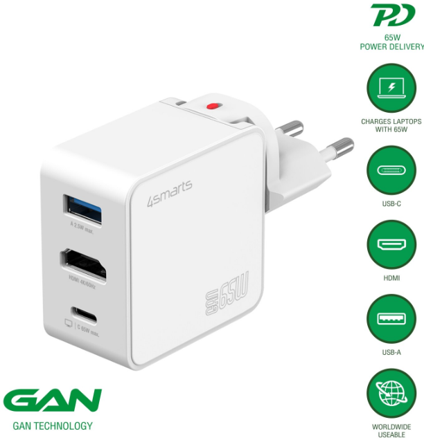 4smarts 3in1 HDMI Hub-Ladegerät GaN Flex 65W weiß (541711)